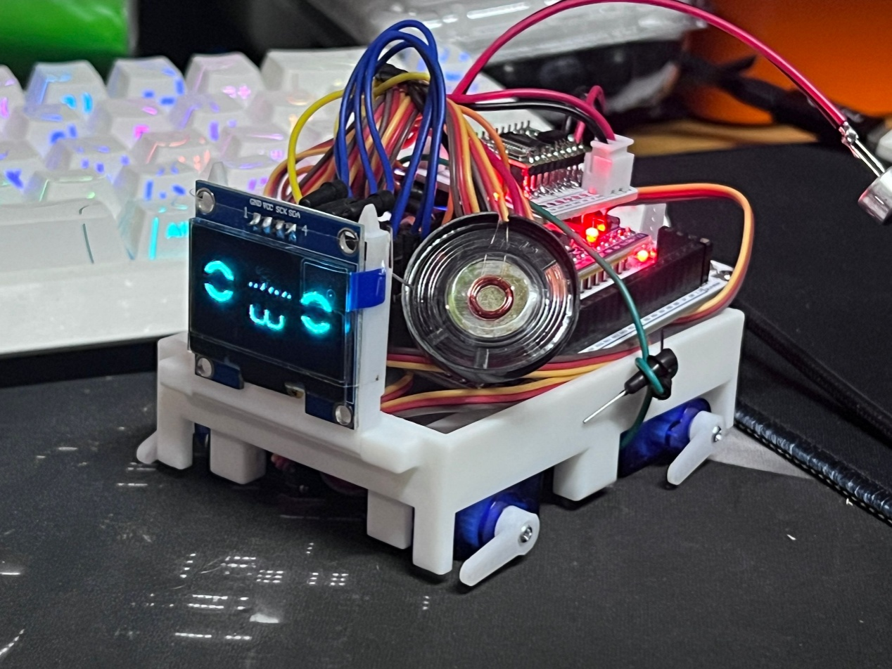 自制机器狗“小智”闪亮登场,吸引了同学们的目光。制作者袁亮同学简要介绍机器狗的设计原理、功能特点和制作过程,展现了同学们在科技创新方面的卓越才华和无限潜力。