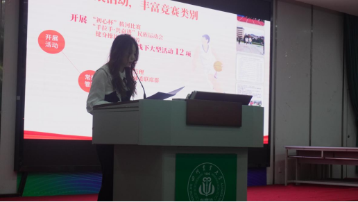 之后,各部门主要负责人上台进行工作汇报,通过数据、案例与图表展示工作成果,全方位呈现工作亮点,各部门在总结中既展现工作成果,也直面不足,总结经验,学生心理健康教育办公室主要负责人刘欣悦针对活动形式单一,推文内容平淡等问题提出相应解决方案:“不断尝试新的内容形式和表现手法,丰富推文选材,提高阅读点赞转发量,不断创新活动形式和内容,加大活动的宣传力度”。彰显反思与进步的决心。