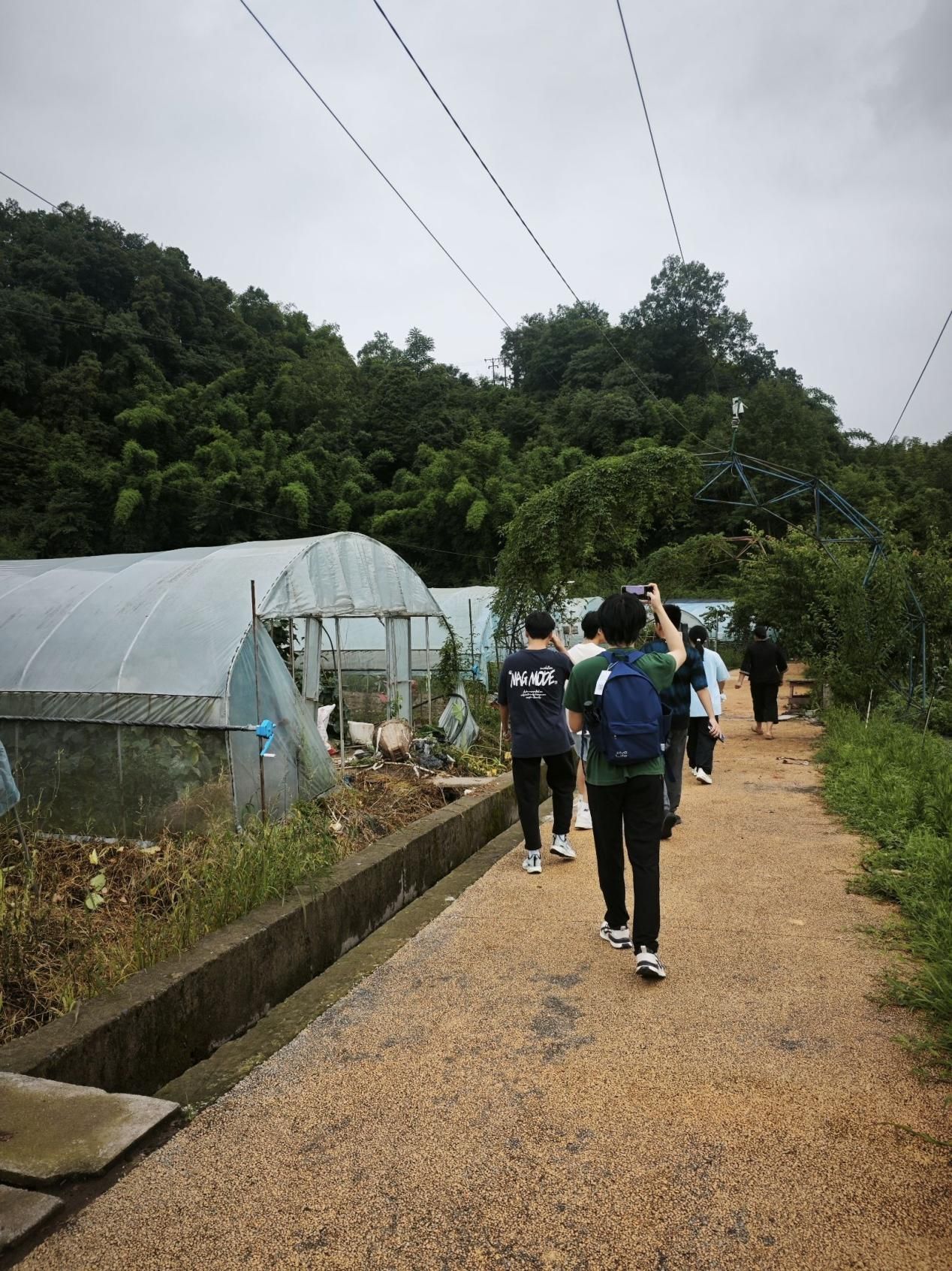 图为社会实践队员在基地负责人邓锦的带领下参观农业基地 周思远摄