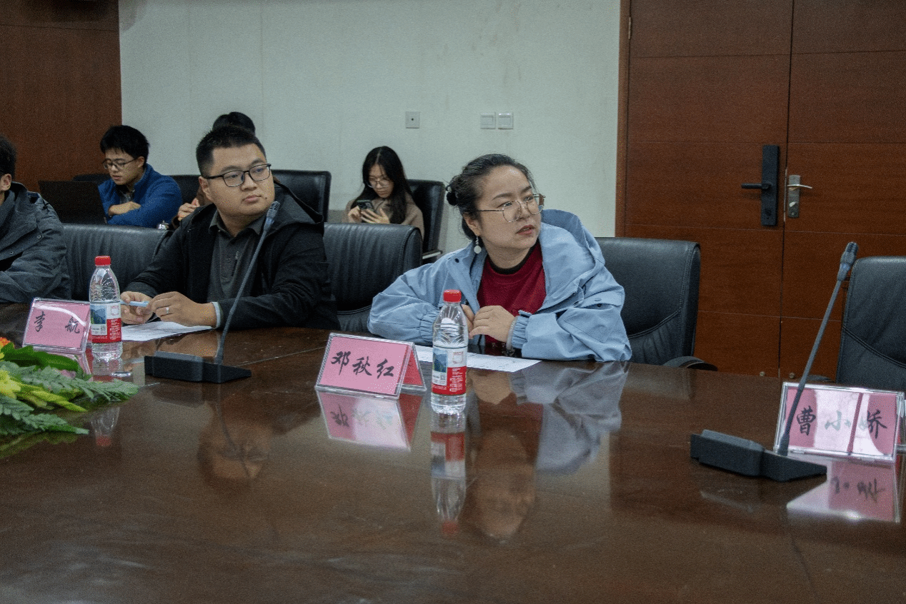 党委办公室主任,团委书记邓秋红老师向答辩班级提问并评分