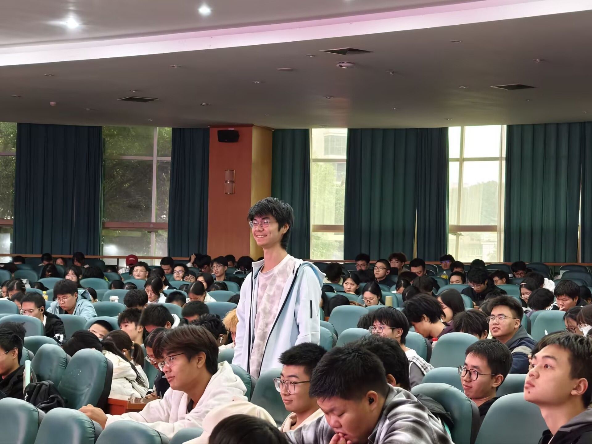 讲座结束后,新生们纷纷表示收获颇丰。张同学说:“之前一直对专业未来的就业方向很迷茫,听完讲座后,我清楚了可以从‘擅长编程’这一优势入手,朝着专业型技术人才方向努力,还计划大二参加学科竞赛提升技能。”王同学则提到:“‘人生飞轮需要持续推动才能看到复利效应’这句话让我很受启发,今后我会制定具体计划,一步步积累知识与能力,不再做‘被动规划的人’”。