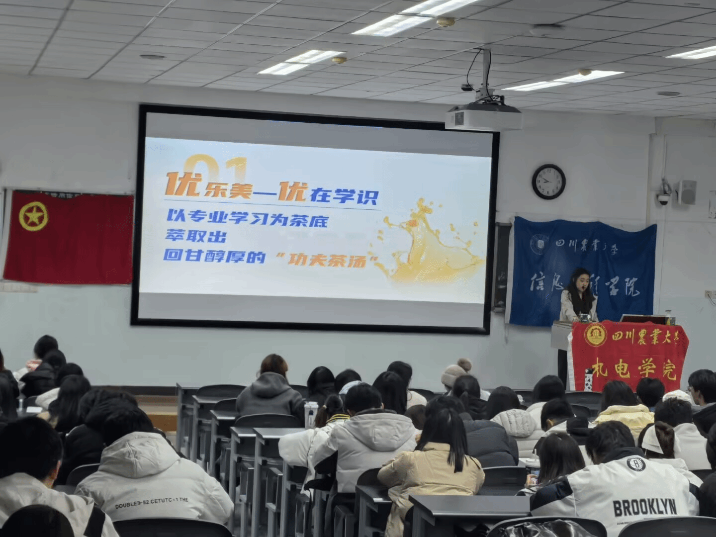 活动在全体团员齐唱团歌的激昂旋律中拉开序幕,嘹亮歌声凝聚起奋进向上的青春共识。校第十二期青马班成员刘奥雅以“执青春之笔,绘盛世新卷”为主题开展宣讲,深入解读全会精神与回信指示内涵,结合强农兴川时代使命,为团员们阐释青年一代应有的责任与担当,让理论学习入脑入心。