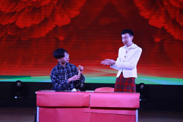 晚会节目内容分为三个篇章:“启•南柯”,“信•金石”,“梦•百年”,来自学院师生的一段《祝福视频》使在场观众感受到了来自学院的亲切与温暖,更有创意《宣传视频》为这场晚会注入不一样的新奇和感动。在主持人陈京枭、胡梦婷、常祖昊、鲁芸露的齐声道好下,整个晚会在欢呼声中正式拉开帷幕。