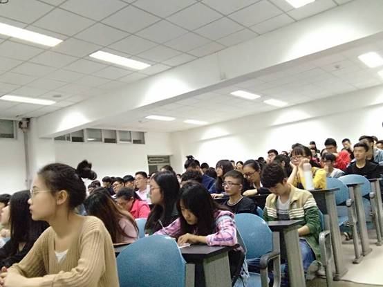 会上,13位班主任助理参与了本次述职答辩。本次答辩采用“5+2”的形式,即五分钟PPT展示加两分钟自由提问。活动现场座无虚席,秩序良好。各小班班助依次登台答辩,就班级简介、学风建设、规章制度、未来工作以及个人感悟等多个方面进行了展示。其中,很多班级在班助的带领下开展了一系列有益于学风建设的活动。计算机1702班在班助刘雨欣的带领下在英语四级考试前举行了记单词活动。值得一提的是,信息1702班在周庆箐的带领下上学期共举行了三次四级模拟考试,全班大学英语四级过级率高达85.3%,位列全年级第一。