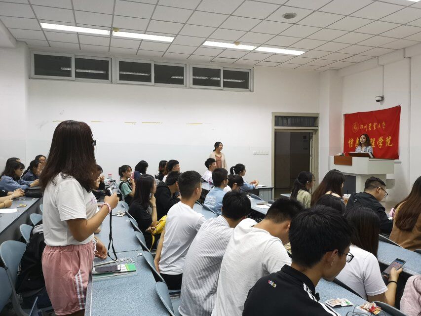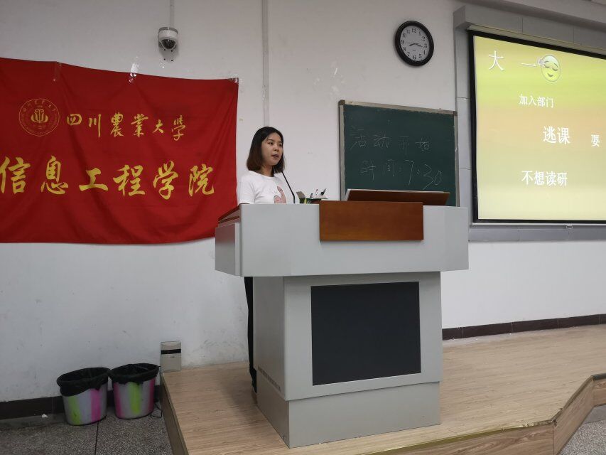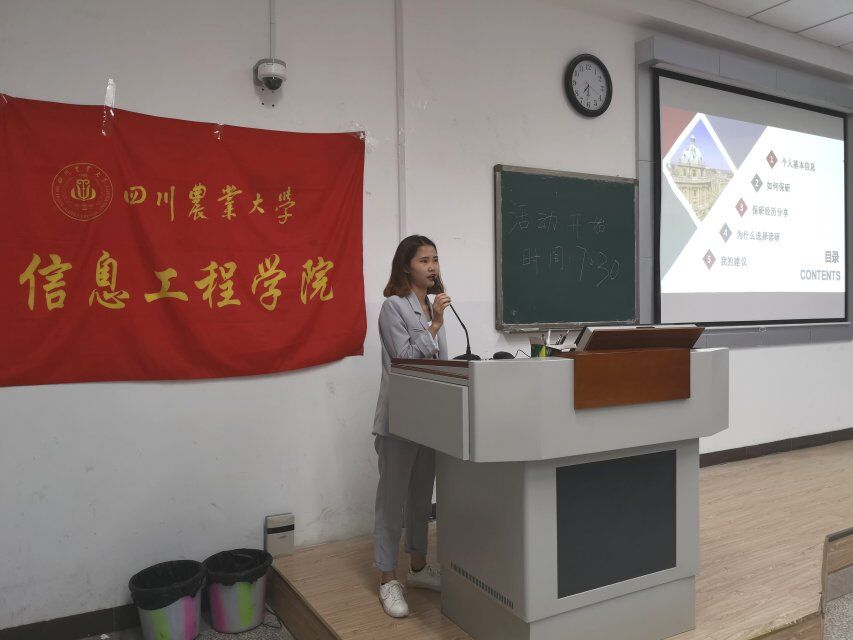 在2018届毕业生即将离校之际,学院团委特别邀请了4位在保研方面较突出的优秀毕业生交流分享经验。获得过优秀学生干部、优秀学生以及校级优秀个人和国家励志奖学金,最终成为西南大学的推免研究生的陈梅师姐,讲述从她大一到大四对学业态度的转变,告诉同学们哪个阶段就该做这个阶段该做的事;保送至电子科技大学的周莉师姐,从大一到大三一共拿下了20多项荣誉与奖励,做过1800多小时的公益活动,坚持与执着并行,努力与制造齐进,她主要与同学们分享了她在电子科技大学、同济大学、华中科技大学参加夏令营的经历和收获;曾获得校级优秀学生、校级优秀学生干部、校级社会实践先进个人等荣誉的文铮师姐被保送至中南大学,在校期间她获得大北农励志奖学金、四川省大学生综合素质A级证书等荣誉。她主要从她生活、学习、工作三个方面告诉同学们,优秀的人不是只知道死读书的书呆子,而是多方面兼顾的全能型人才。柳博文师兄是四位中唯一一位通过“双创专项”获得保研资格的,他大学期间获得实用新型专利两项、在毕威尔工作室项目中盈利三万元,获得省级创业补贴一万元,并以法人和创始人的身份成立了自己的公司。他强调同学们应提前定好目标,并为之不懈努力。