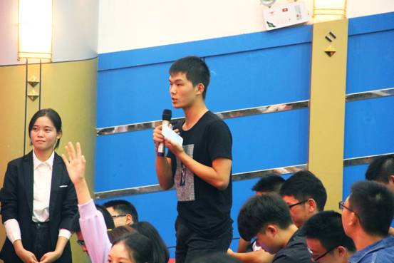 校学生会主席石汶峰进行了点评,双方辩手表现都十分精彩。观众提问环节,18级小萌新们对辩论也有一些特别新颖的想法,独到的见解。