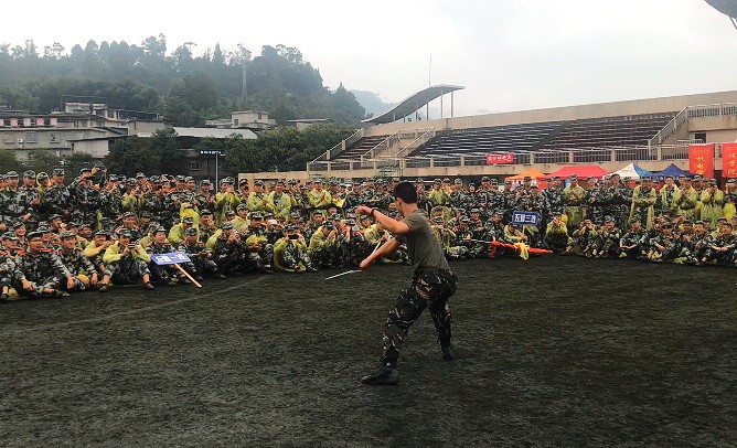 这次慰问演出给新生带来一大惊喜,一位教官更是在现场临时展示了一段精彩的双截棍表演,伴随着全场热烈的掌声,活动现场气氛达到了高潮。