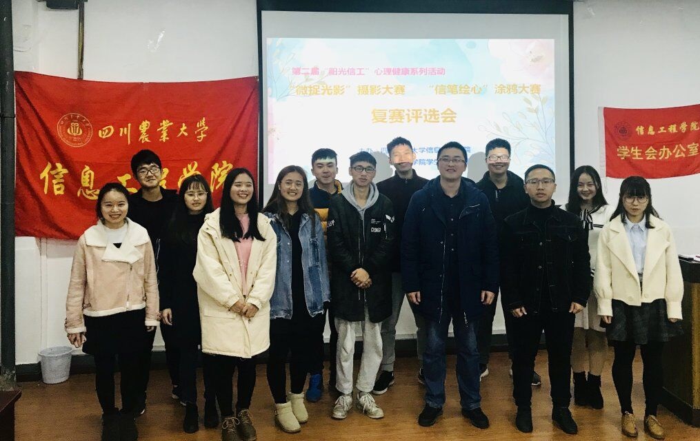 12月1日下午,由信息工程学院主办、学生会办公室承办的第二届“阳光信工”心理健康系列活动之“微捉光影”摄影大赛及“信笔绘心”涂鸦大赛复赛评审于工学楼210会议室成功举办。此次评审团由信息工程学院党委办公室主任、团委书记黄锎靓老师领衔,以及太阳集团tyc86心理协会、动漫协会协会会长、信息工程学院学生会主席团成员、部门主任共8人组成,从40份作品中选出了20份作品晋级决赛。
