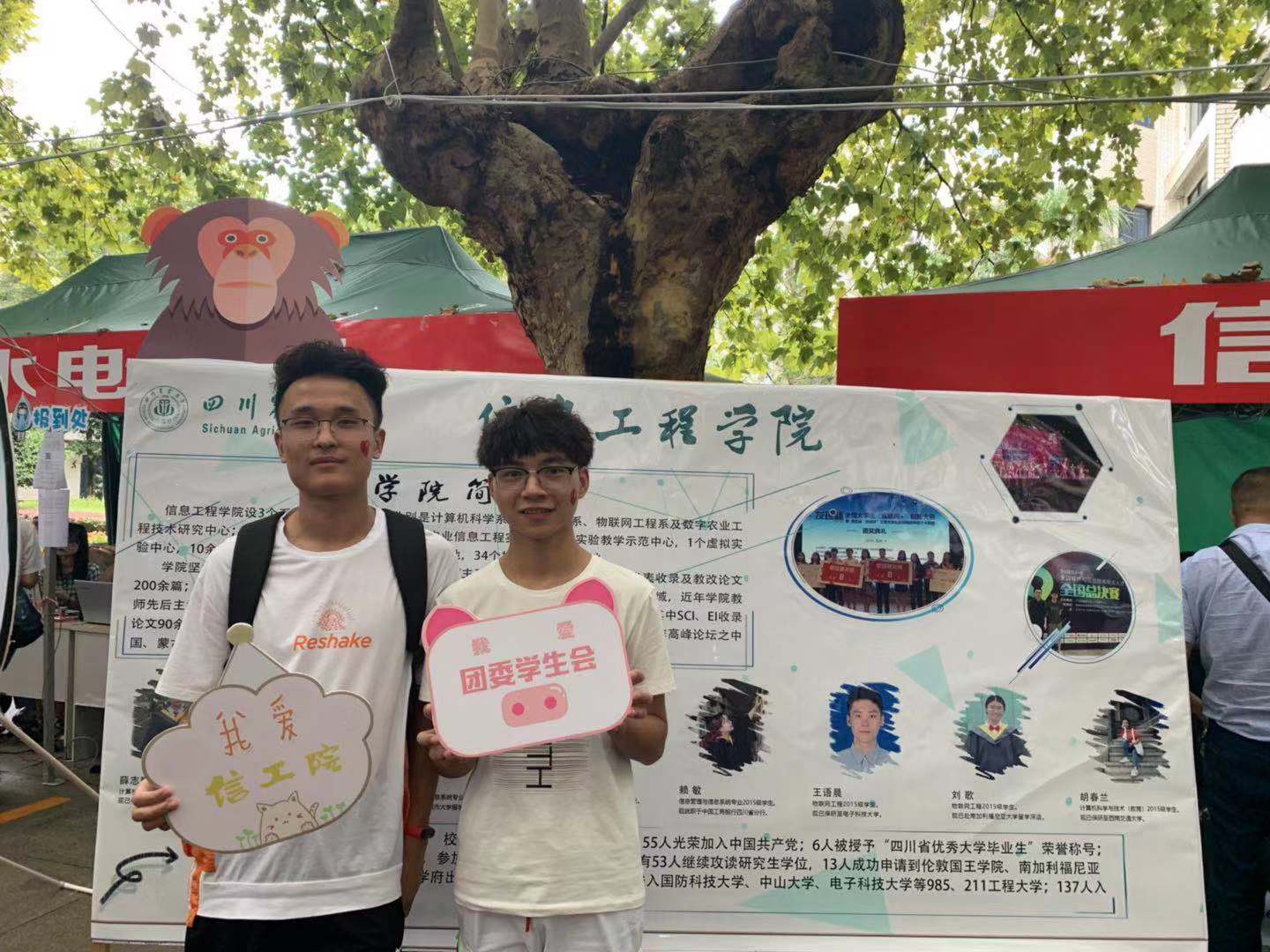 为了让新生更快了解学院,为新生树立学习榜样,推进学院学风建设,在迎新活动中,信息工程学院设计并制作了学院简介和优秀毕业生展板,重点展示了我院学子参加各大专业赛事的获奖留影,以及2015级优秀毕业生代表:有综合素质好被推免至国防科技大学、中山大学、电子科技大学等985、211工程大学继续攻读研究生的,有专业能力强毕业后入职于腾讯等行业顶尖企业的,有把握机会出国留学深造的……展板置于梧桐大道吸引了众多新生和家长驻足观看。