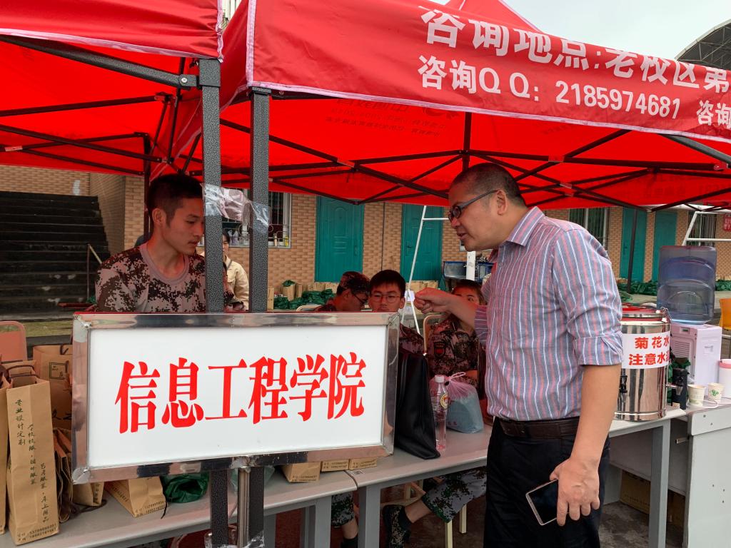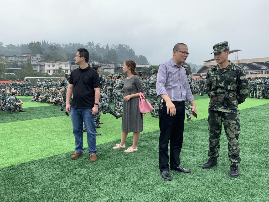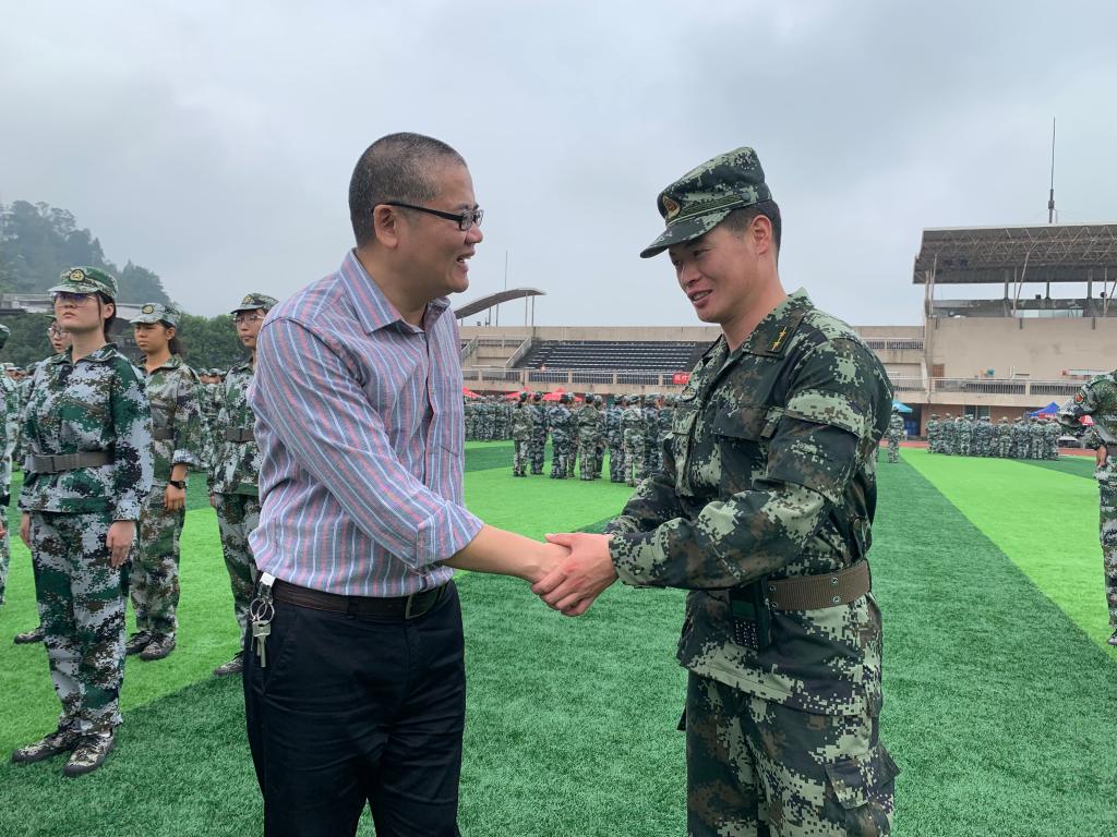 9月5日下午,信工院党委书记王中成、党委办主任黄锎靓及党委办全体教师前往三区操场看望2019级新生军训和军训教官。