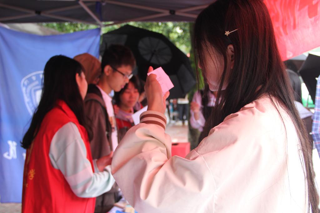 在活动现场,工作人员为参加活动的同学精心准备了几百道涉及网络安全知识的题库,“什么是网络安全?”“什么是防火墙?它是如何确保网络安全的?”“上网时如何确保信息安全?”“如何防止密码被盗?”……尽管天空下着细雨,活动依然吸引了许多来往的同学。他们纷纷驻足观看并踊跃参与答题。对于答不上来的问题,工作人员会耐心地为他们解答,现场气氛热闹非凡。有同学感叹到,“我以前都不知道有网络安全宣传周呢……”“这个宣传活动很有意义,网络安全与我们的学习、生活息息相关,我们非常有必要掌握一些防范知识,避免个人信息泄露的风险。”