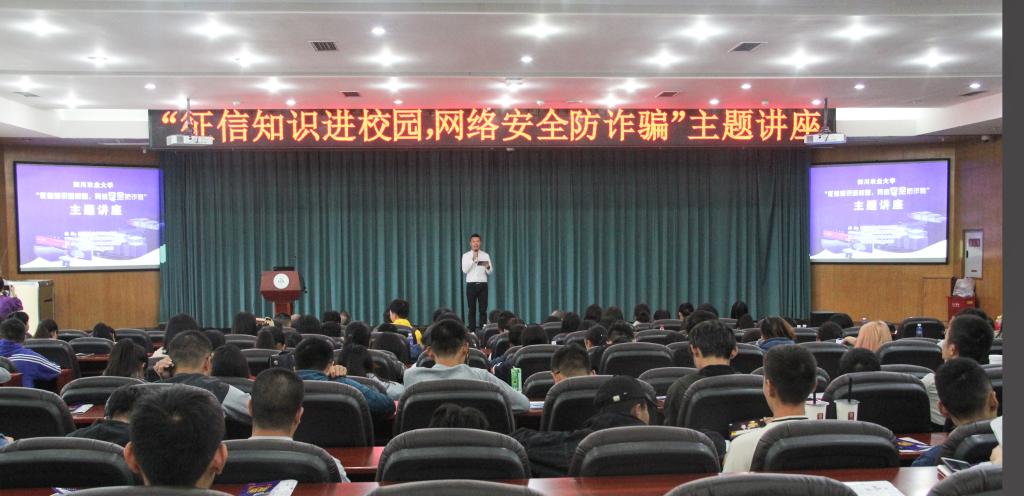 在活动开始,信息工程学院党委书记王中成与中国人民银行雅安市中心支行行长杨屹东向同学们传达了征信对当代大学生的重要性,鼓励大家不仅要自身讲诚信,更要积极投身到征信的宣传当中,共同营造守信者荣,失信者耻,无信者忧的社会风气。紧接着,银行专业讲师结合同学们的实际生活与时下热点,对什么是征信,征信的重要性等征信知识,以及大学校园中校园贷的常见套路与校园贷的危害进行了详细的讲解,使同学们对征信知识与校园贷的危害有了更加深入的的了解。在校园贷宣讲环节,现场还播放了信息工程学院拍摄的根据“校园贷”真实事件改编的警示教育宣传片。