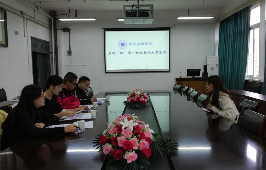 11月10日中午,信息工程学院2019年“勇往‘职’前”职业生涯规划系列活动----模拟面试大赛决赛在四教210举行,共12名同学进入决赛。此次大赛特别邀请到了四名在优质企业就职的优秀毕业生担任评委,旨在通过本次模拟面试大赛锻炼同学们的面试技巧,助推提高同学们的就业能力。
