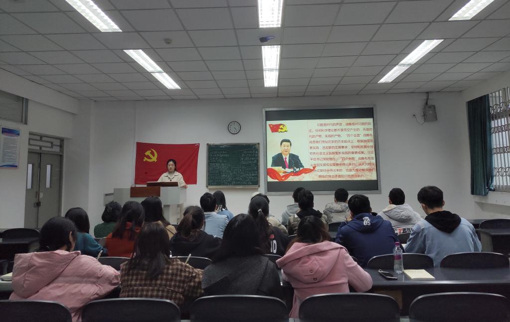 11月19日下午,信息工程学院计算机(教育)学生党支部于十教B–210教室召开深入贯彻“四个全面”战略布局学习会。全体中共党员、预备党员、重点考察对象和入党积极分子参加此次学习。会议由吕金荣同志主持。