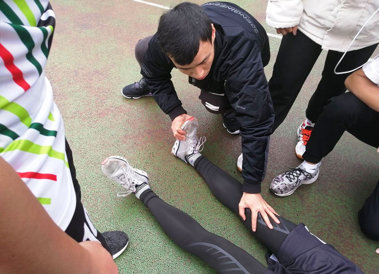 决胜局,双方都非常紧张,失误频频,你来我往,比分非常胶着,主攻手刘闰涵拼到脚抽筋,经过文老师短暂处理后,他再次披挂上阵,“战场”上坚持到底,永不放弃,是每个信工人应有的品质。真正决赛时刻来临,双方依旧战成18:18平,最后两分,谁能拿到,谁就笑傲群雄。强大的体院体能充沛,发球势大力沉,我院队员体能已在透支边缘,接球已非常吃力,可依旧稳扎稳打,强硬接下发球,转守为攻,成功得分,以19:18领先。激动人心的时刻,观众屏住呼吸,双拳紧握,等待最后时刻来临。我院发球手将球顺利发出,3、5个来回后,体院球员急于得分,迅猛跳起,大力扣球,我院两名队员奋力起跳,共同拦网,体院球员来不及反应,排球顺着球员身体而下……时间像凝固一样,一秒也足够漫长。