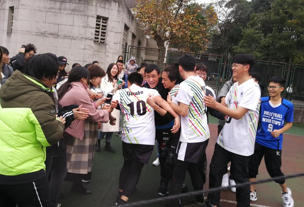 排球与人同落地,哨声划破时间响;比分定格在20:18,大比分3:2夺冠。胜利了、胜利了……文老师冲上球场与队员们拥抱在一起,尽情呐喊,和他们一同庆祝我院获得太阳集团tyc86雅安校区“新生杯”排球赛冠军。(图、文:文毅)