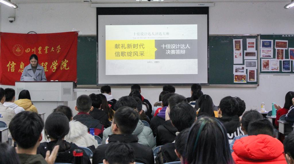本次设计大赛面对全校开展,分别来自信工院、艺传院、理学院等学院总21件作品入围决赛。决赛作品分海报设计类,门票、节目单设计类。通过参赛选手详细介绍作品,专业评委提问、评分以及大众评委评分,最终评选出两类获奖作品一等奖各1名、二等奖各2名、三等奖各2名。该比赛,作者甚为用心,付出了较多心血与汗水,有的作品色彩鲜明,有的清爽简约;有的作品“又红又专”突出新时代,也有的紧密结合我院学科突出学院特色;有以“信鸽”代“信歌”突出晚会主题,也有“银杏”代“迎新”……更有手绘作品,美轮美奂。活动现场,评委与选手有趣的问答,更是引来阵阵笑声,让比赛充满乐趣而又不失庄重。