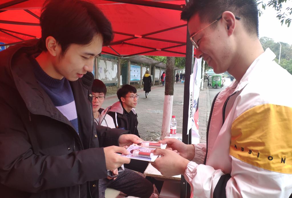 据悉,本次活动有线上、线下两个部分。线上活动一是在QQ空间推出关于诚信考试的说说,通过社交网络推广让更多的同学了解并认识到诚信考试的重要性,同学们转发集取一定“赞”数可获得相应奖品。二是通过学院官方微信公众号发布与学校考试规章制度相关微信推文,并分享一些科学的复习方法、发出诚信考试倡议,激励同学们认真复习。线下活动中,同学们现场在微信推文末尾留言评论兑换礼物,并在印有“严考风,优学品,讲诚信,践承诺”的横幅上写下自己诚信考试的承诺。“考试千万场,诚信第一条”、“认真复习,凭自己的努力获得好成绩,不违考场纪律”、“好好复习,比作弊考得高”……大三的陈同学提到,每次考试都会有同学因作弊而被通报批评,离期末考试还有一段时间,希望大家都能够认真复习,凭借自己的实力通过考试。此次考风考纪活动获得同学们的积极响应,达到了预期效果。(文:杨阳,马煜杰 审:文毅)