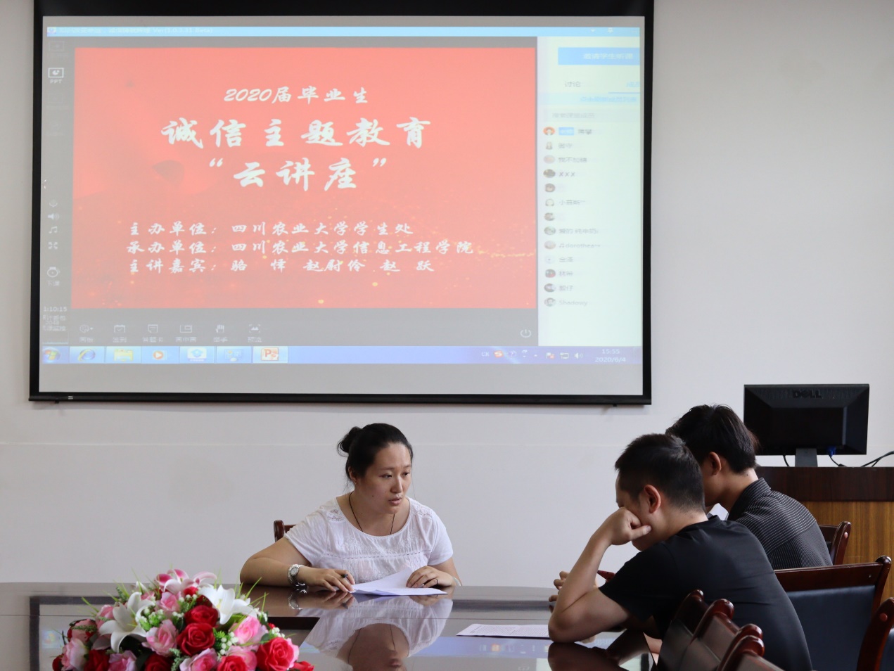2020年6月4日下午,由太阳集团tyc86学生处主办,信息工程学院承办的“知识改变命运、诚信铸就辉煌”诚信主题教育“云讲座”在工学楼210开展。邀请中国人民雅安分行的骆怿、中国农业银行雅安分行的赵尉伶、农村商业银行的赵跃为主讲嘉宾进行宣讲。此次讲座以线上直播的形式开展,旨在让同学们了解个人征信的重要性。同时在线聆听的同学数量最高达到了733人。
