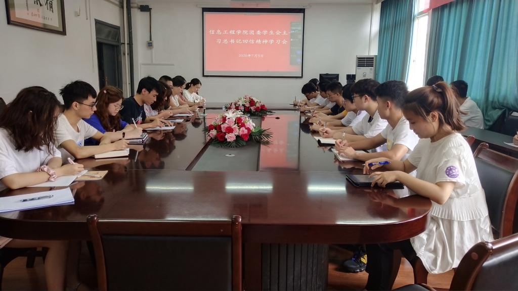 7月5日中午12点40,信息工程学院团委组织召开习近平总书记给复旦大学《共产党宣言》展示馆党员志愿服务队全体队员的回信精神学习会。会议采用线上线下相结合的方式,在腾讯会议和工学楼210会议室同步开展。全体团委老师和团委学生会主干参加了本次会议。会议由团委副书记邓秋红老师主持。