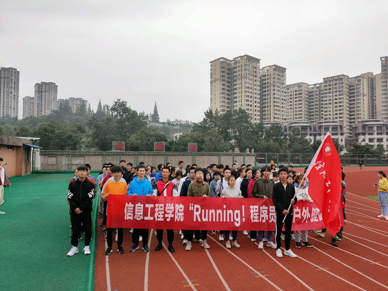 为响应国家“走下网络,走出寝室,走向操场”的号召,丰富同学们的校园生活,2020年10月25日,信息工程学院“Running!程序员”户外健康跑活动在三区操场开展。本次活动在10月24日(程序员节)进行报名,400余人踊跃参与。