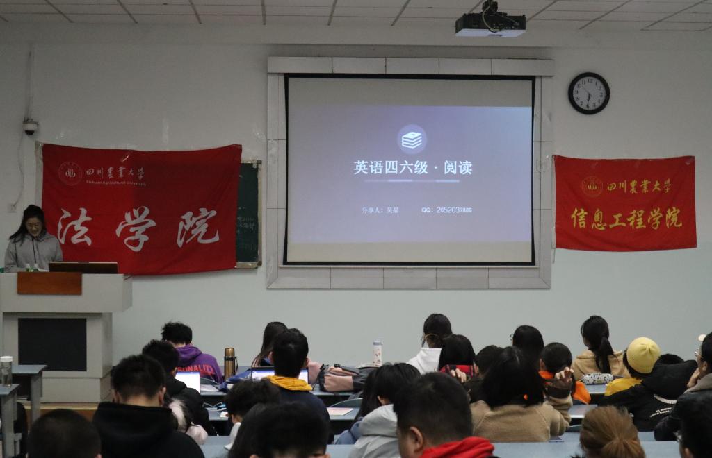 为提升信工院与法学院20级新生的全国大学生英语四、六级考试过级率,加强两院学风建设交流。2020年11月21日16:30,信工院学习学术部联合法学院学习学术部在十教A201举行“执经验之笔,书过级篇章”——英语四、六级交流会。