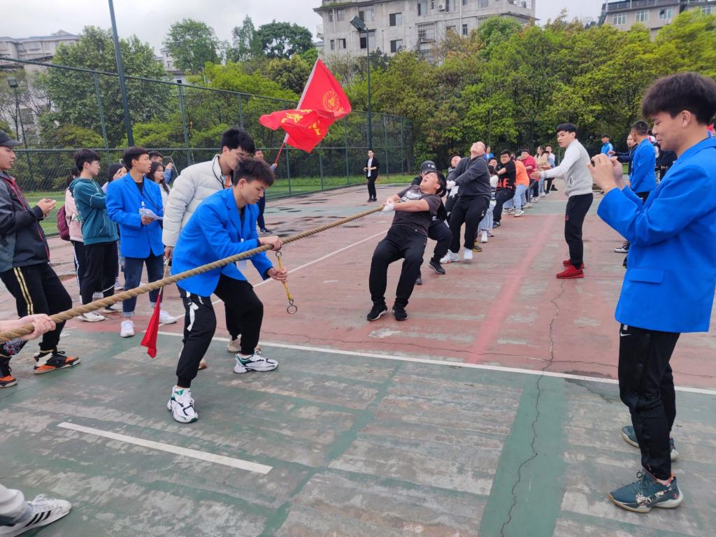 4月14日下午13:00,我院和人文学院在三区排球场上进行了一场激烈的拔河赛。学院党委办公室老师文毅、向建桦到场为运动员们呐喊助威。