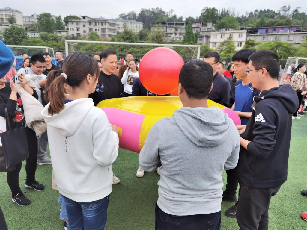 八仙过海比赛项目中,老师们按照提前商量的“比赛战术”,争分夺秒,以稳定的身姿奔向终点线。平时课堂上严肃的老师们,到了运动场上,彼此交流、笑声不断,氛围温馨而热烈,每一位老师的比赛都牵动着在场同学的心弦。后面的项目里,老师们可谓“各显神通”,他们团结一致,克服了一个又一个困难。比赛中被其他老师亲切地称赞为“灵活的胖子”的胡兵老师表示:“这次比赛具有趣味性又可以锻炼身体,收获颇丰!”