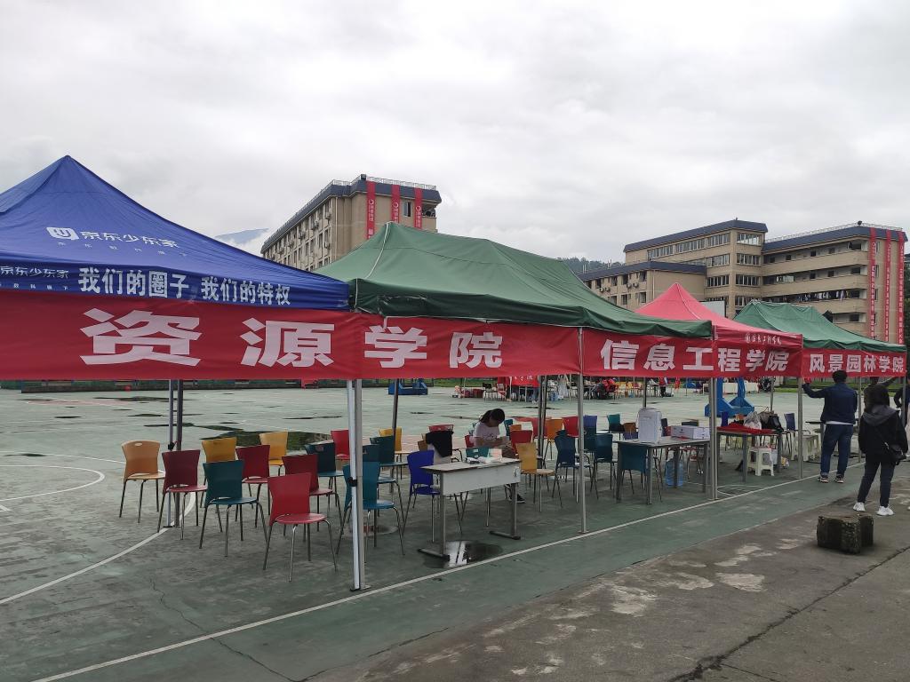 上午10:30,我院志愿者于梧桐大道集合。党委办公室老师向建桦做好分工安排后,接待准备工作有条不紊地开展着。学院志愿者在三区运动场搭建好风景园林学院及资源学院的帐篷,拉上横幅,备好饮用水和药品。与此同时,一部分志愿者在梧桐大道举牌等待校车的到来。