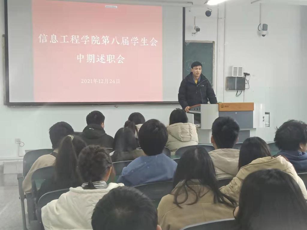 12月24日中午,信工院学生会于1教106召开第八届学生会中期述职会。党委办公室辅导员老师老师,学生会主席、学生会各部门全体学生干部等98人参会。会议由林彬主持。