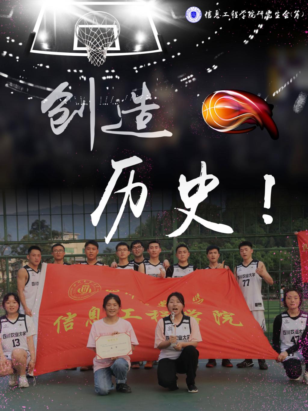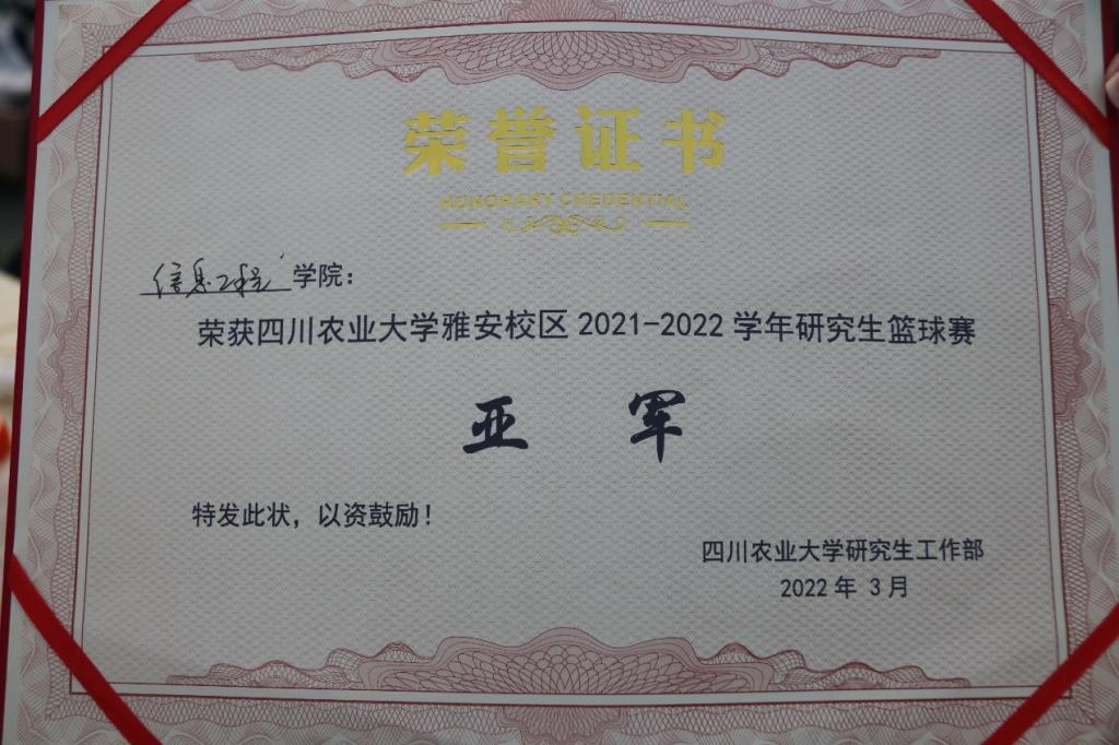 3月18日下午,太阳集团tyc86研究生篮球赛雅安校区总决赛在老区篮球场拉开序幕。信息工程学院研究生篮球队在小组赛中先后战胜生命科学学院和水利水电学院,以小组第一的成绩出线;在半决赛中又以绝对优势战胜食品学院,最终获得决赛的入场券。经过激励比拼,我院在本次比赛中荣获亚军。