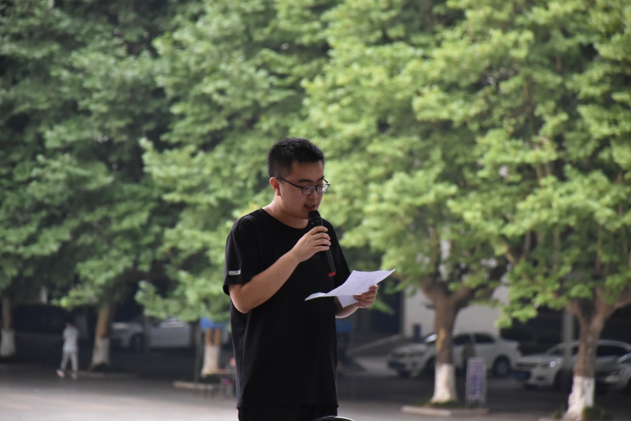 仪式在庄严的国歌声中开始。李晶对本次暑期社会实践作了全面详实的讲解后宣读信息工程学院2022年暑期社会实践院级重点团队名单,文老师接着为重点团队代表授旗。随后,参加本次暑期社会实践的研究生代表余卓炫进行发言。他向大家分享了实践经验,以这次社会实践活动为重要契机,充分展现新时代中国青年的担当,以优异的实践成果迎接党的二十大胜利召开。随后,学院团委学生兼职副书记庞玲领读2022暑期社会实践安全承诺书,出征仪式的全体同学跟读2022暑期社会实践安全承诺书。
