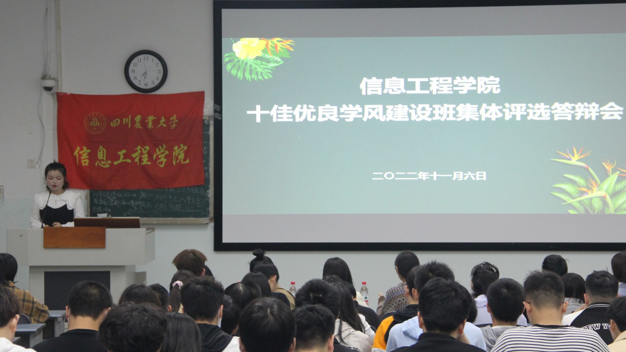 11月6日晚,2022年度“十佳优良学风建设班集体”评选答辩会于十教A201正式开展。各小班的班团支委来到现场观摩学习,学院微信公众号同步线上直播,直播观看高达上千人次。