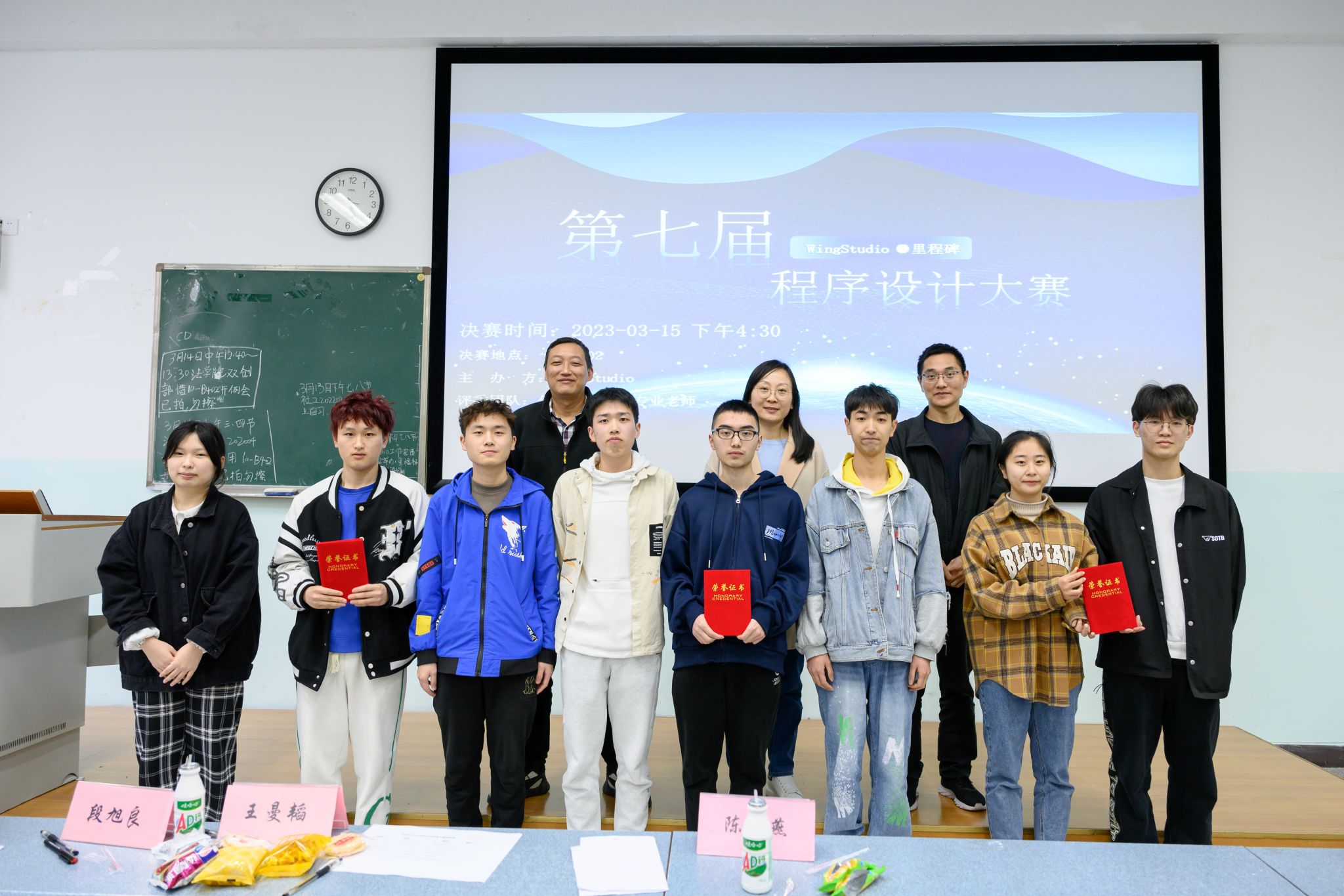 近日,信息工程学院WingStudio工作室主办的2021级“里程碑”程序设计大赛决赛,在十教B402教室圆满落幕。学院副院长李军副教授、学院副院长段旭良副教授、计算机专业系主任陈晓燕教授、WingStudio指导教师潘勇浩副教授WingStudio工作室全体同学和学生代表共同担任了大众评委。