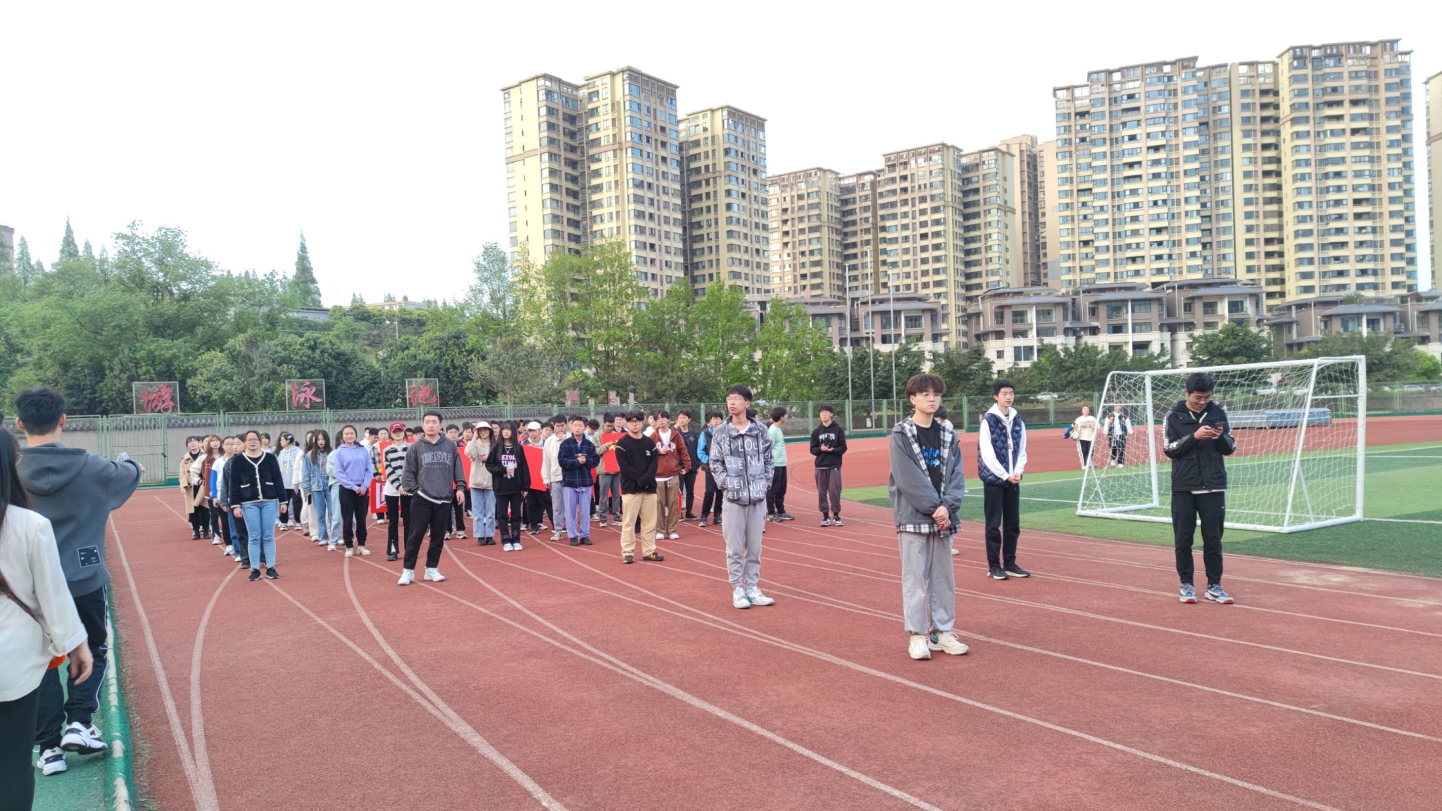 为提高运动员体能,争取在校运会获得更好名次,信息工程学院体育部与其他部门协商制定了训练方案,在4月6日课余时间于新老区操场开展了各项目的第二次整体训练和入场式的第一次训练,从训练结果来看可见大家的熟练度和配合度已经有了很大的提高。入场式训练中,党委办公室主任邓秋红老师到现场进行了指导。