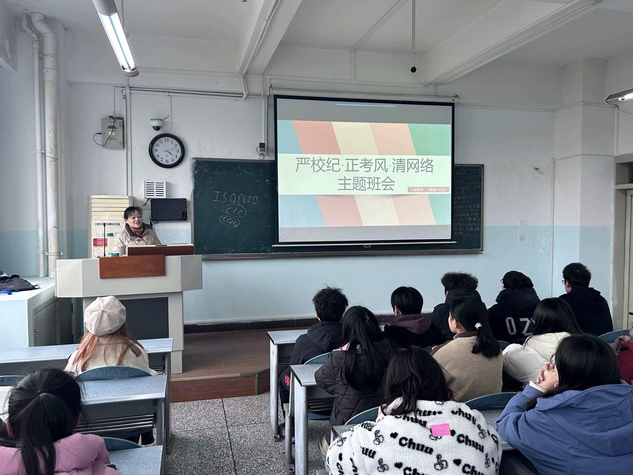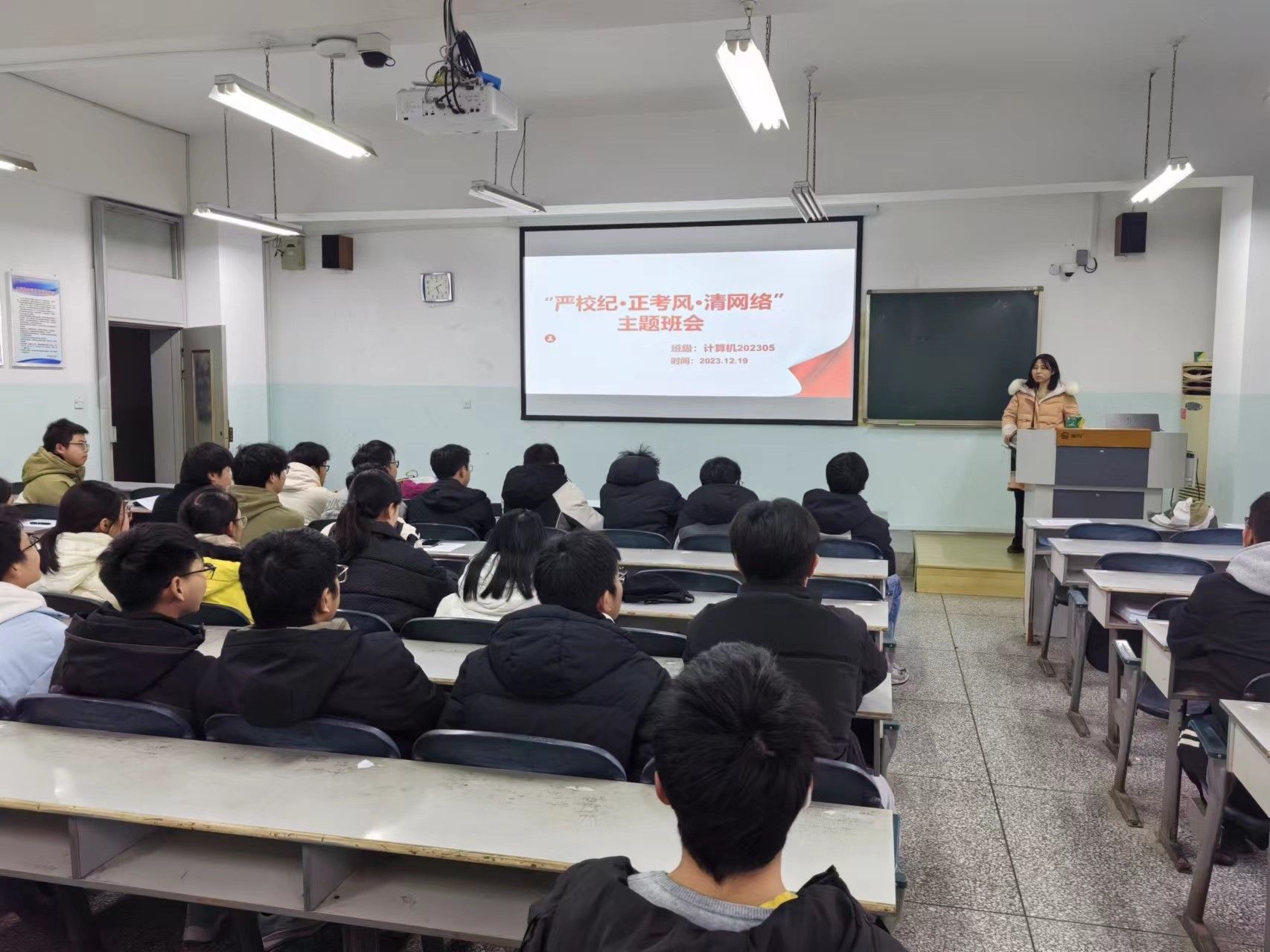 12月17日-27日,为进一步引导全院同学遵守国家法律法规和校规校纪,严明考试纪律,营造清朗的网络环境,信息工程学院全院56个小班开展“严校纪•正考风•清网络”主题班会。