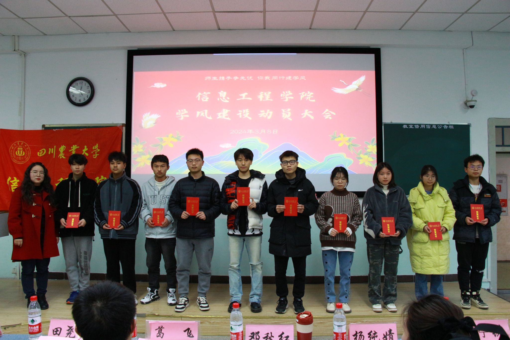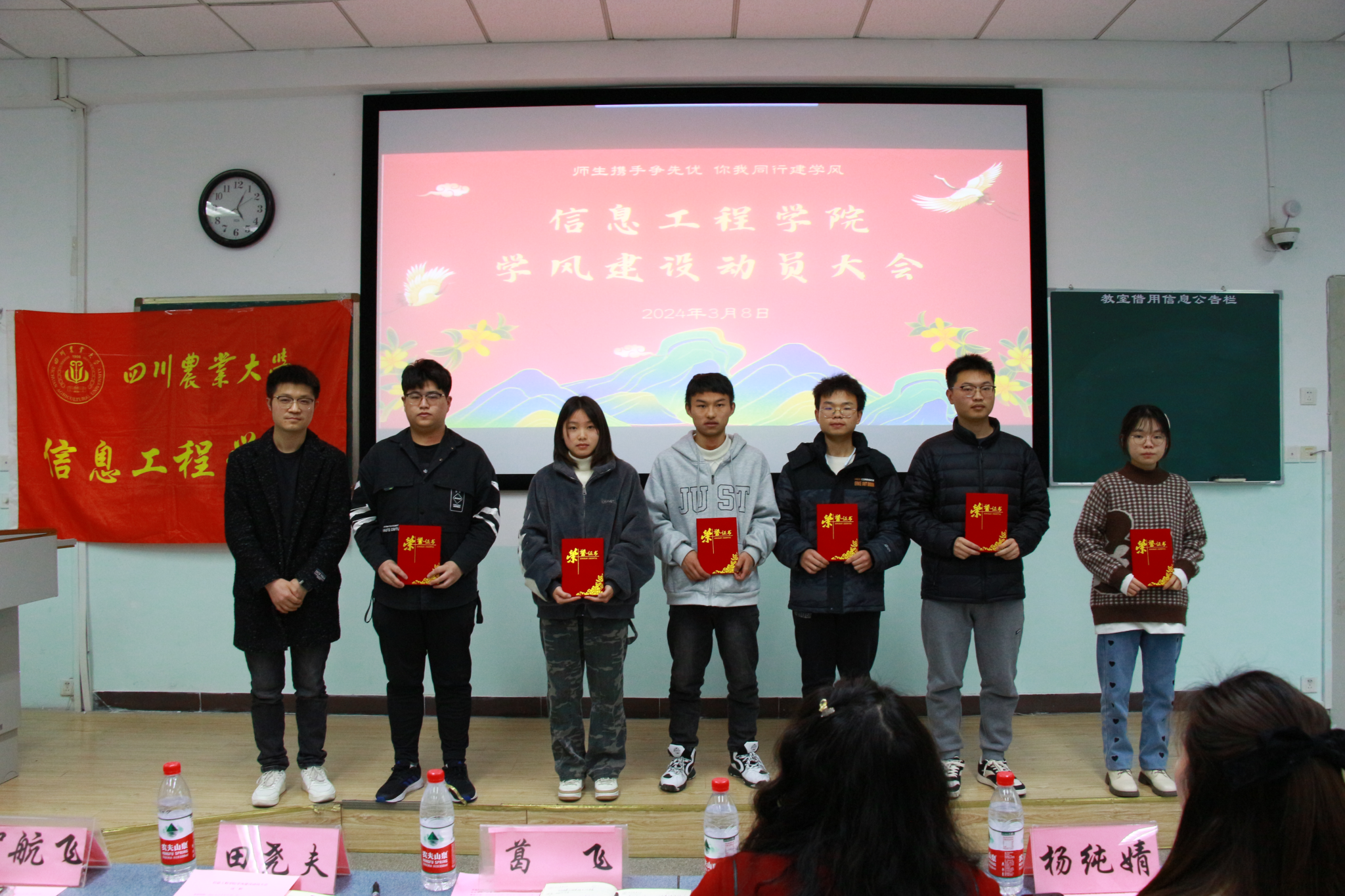 大会对获得“十佳优良学风建设班集体”和在“学风建设温度计暨优良学风创建班集体”评优中获得等级奖项的班级进行了颁奖表彰。