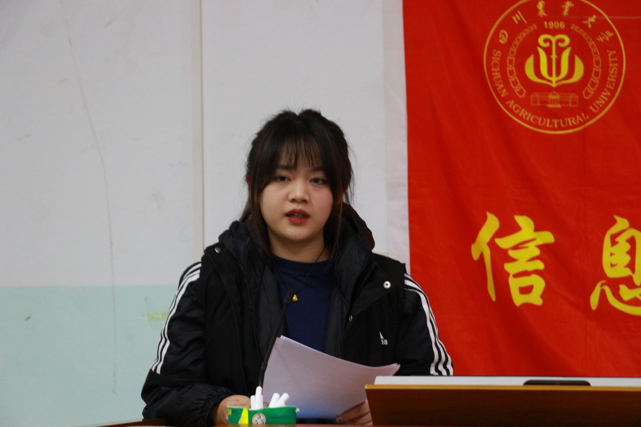 主席团执行主席贺航飞同学宣读了《信息工程学院建设优良学风“六要”倡议书》,倡议同学们要克服懒惰心理,既要克服“躺平”思想,又要防止过度“内卷”,勤奋守纪、笃学好问,努力成长为德、智、体、美、劳全面发展的新工科人才。