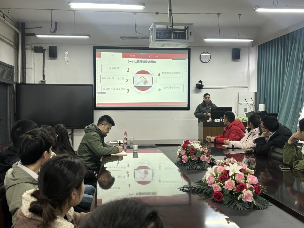 会上,凡志强老师结合自身丰富的经验,同大家分享了复试的通知解读、信息来源、考查内容、形式程序、导师联系、现场的礼仪,心态以及调剂要求、流程建议等相关事项,从心理到实战,鼓励同学们摆脱紧张心理,做好万全准备,展现出自己该有的能力和精气神。随后,文毅老师结合本院具体情况做出了针对性建议和分享,让同学们在准本复试的阶段沉住气,结合本院考研复试具体情况做出最合理的选择。会上同学们聚精会神,埋头笔记,踊跃提出不懂的问题,凡志强老师也耐心的一一进行了指导。