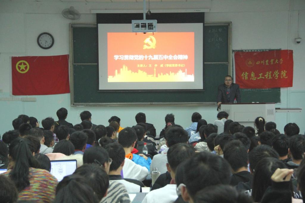2020年11月10日16:30,信息工程学院在十教-A403举办了青马班和团校第一期团课——“学习贯彻党的十九届五中全会精神”。本期团课由院党委书记王中成副教授担任主讲人,学院第三期青马班和第四期团校全体学员到场聆听。