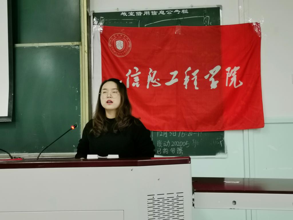 2020年12月4日16:30,信息工程学院于十教-A403举办了第三期第四讲团课。本次团课由院团委副书记兼党委办公室副主任邓秋红老师担任主讲人,主题是“新时代呼唤新青年,新青年要有新担当”。学院青马班和团校200余名同学到场聆听。