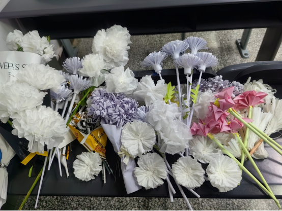 交接过程中,一位同学说到:“这手工纸花活动真是太有意义了!我们不仅可以亲手制作纸花缅怀先烈,还能通过录制视频和文案撰写来表达对他们的敬佩。我们今天的和平幸福生活是千千万万革命先辈们抛头颅洒热血换来的,我们要缅怀过去,更要铭记历史,珍惜当下!”