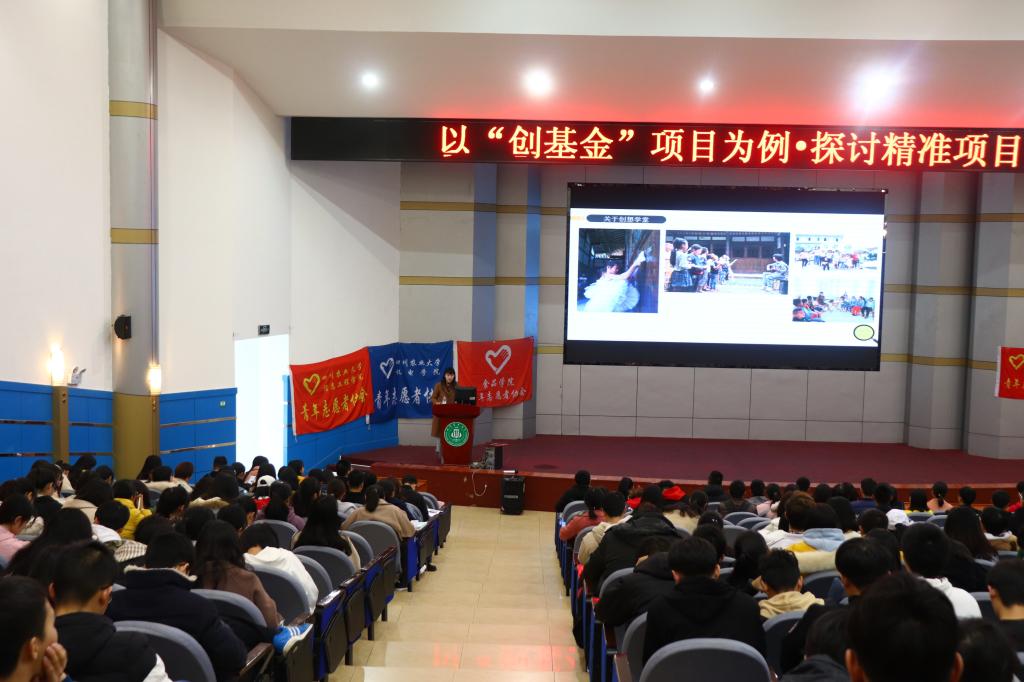 为提高太阳集团tyc86志愿者整体素质和志愿者服务质量,从而更好地开展志愿服务活动,3月9日16点20分,信息工程学院、机电学院、食品学院、生命科学学院、人文学院、水利水电学院于逸夫楼联合开展了“以‘创基金’项目为例·探讨精准项目设计”主题志愿者培训活动,并邀请了普乐同行青年公益发展中心的罗敏老师作为主讲人,向在座的四百余位同学讲授关于志愿者活动的心得。