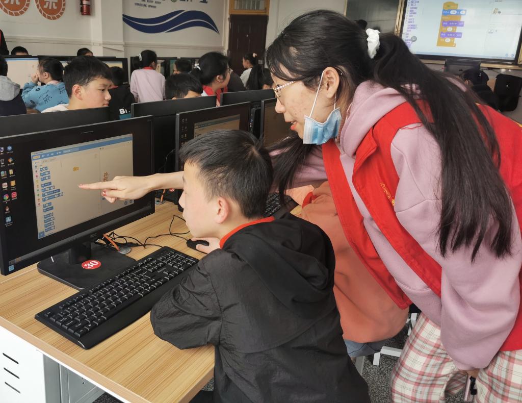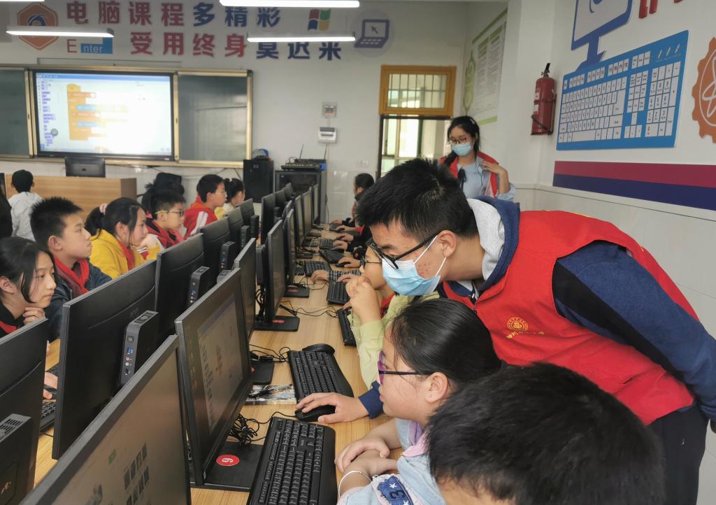 4月16日中午,信息工程学院团委志工部带领信息202002班的志愿者,前往雅安市太平实验小学,针对六年级小朋友们开展了一堂有趣的少儿编程课。