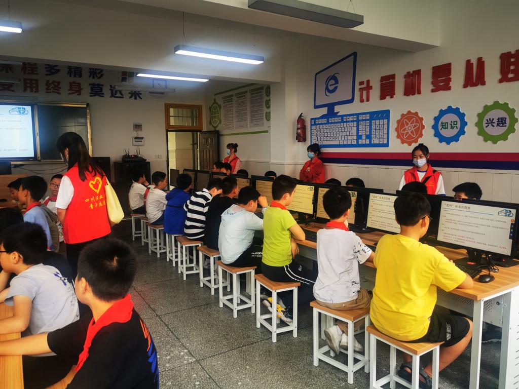 9月17日下午,信息工程学院团委志愿服务部带领计算机(职)2019级2班的志愿者,前往雅安市太平实验小学,面向六年级二班的同学,开展“志愿支教路,安全网络行”志愿活动。