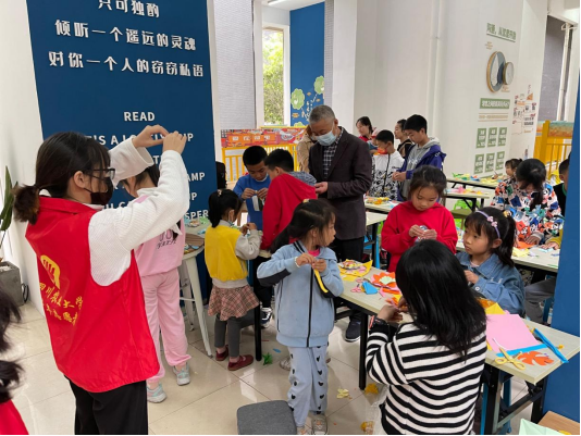 志愿者们分工合作,放映了详细精美的ppt,耐心教授小朋友们剪纸,让他们在玩耍中提高动手能力,感受中华优秀文化遗产的独特魅力以及悠久的历史。在课间,志愿者们给小朋友们分发了自带的小零食,进一步拉近了彼此之间的距离,小朋友们也逐渐放下了腼腆和隔阂,积极主动地上台表演。委婉动人的《再别康桥》,饱含深情的《我深深爱恋的祖国》,清脆稚嫩的《小雨沙沙》,一首首朗诵,一支支歌曲,或欢快,或激昂,种种景象,成为了在场每个人心中难以忘怀的美好记忆。