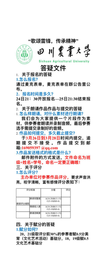 本次活动以朗读的形式进行,参赛同学需要朗读由主办方提供的文稿,并将音频发送至指定邮箱,由主办方评分并排名。参与此次活动的同学表示,此次朗读活动,让同学们更加深入地了解了雷锋精神,明白雷锋精神是付诸于行动的,而不仅仅是一句口号。