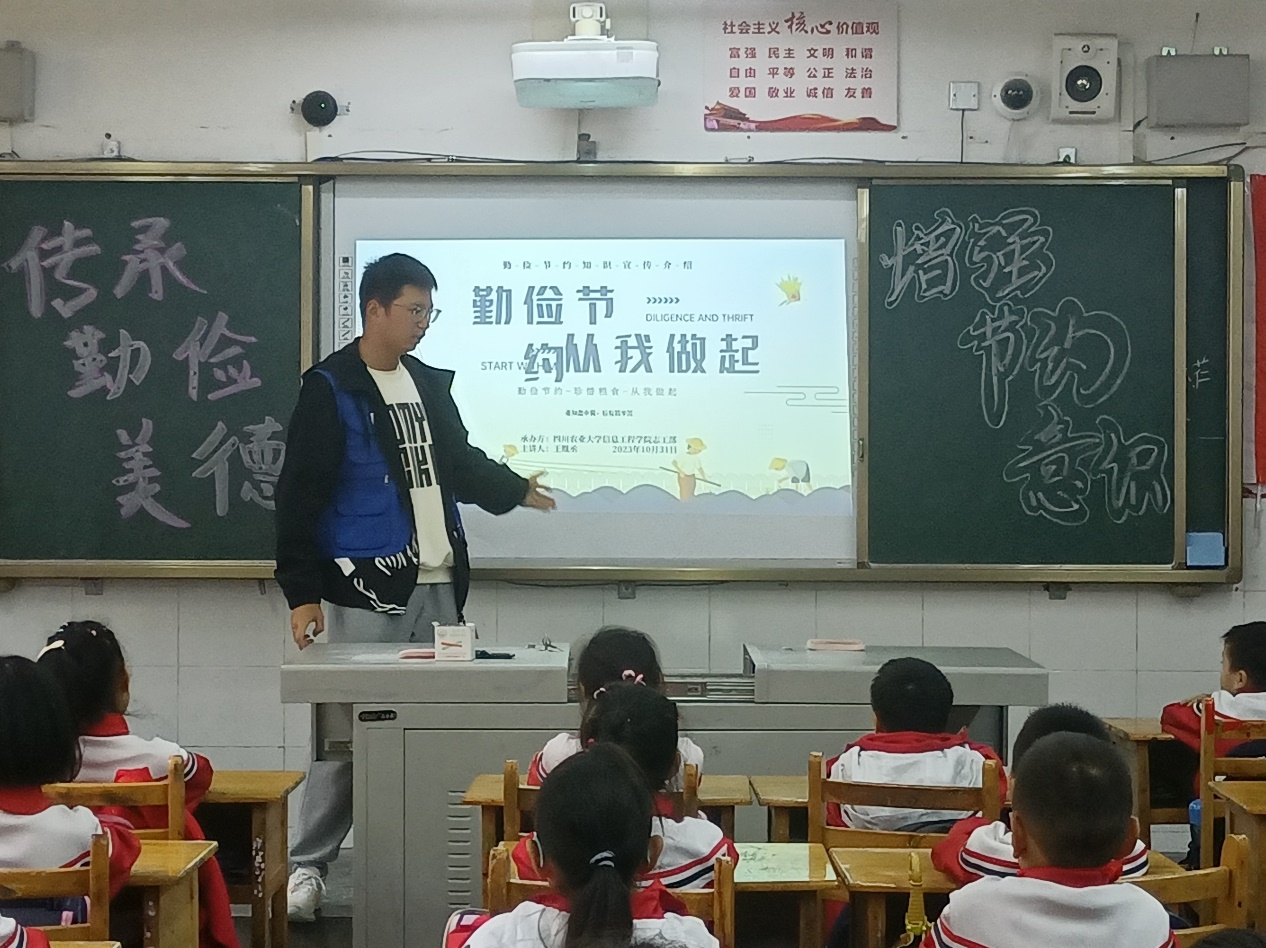 志愿者们前往太平实验小学开展志愿活动,活动前,志愿者们提前抵达场地,布置教室、绘制黑板报、拷贝PPT,充分做好准备工作。活动中,志愿者在学校负责人的带领下,为小朋友们宣传勤俭节约的传统美德,鼓励小朋友们在日常生活中通过“光盘行动”和随手关灯关水来身体力行,让他们从小树立勤俭节约的意识。