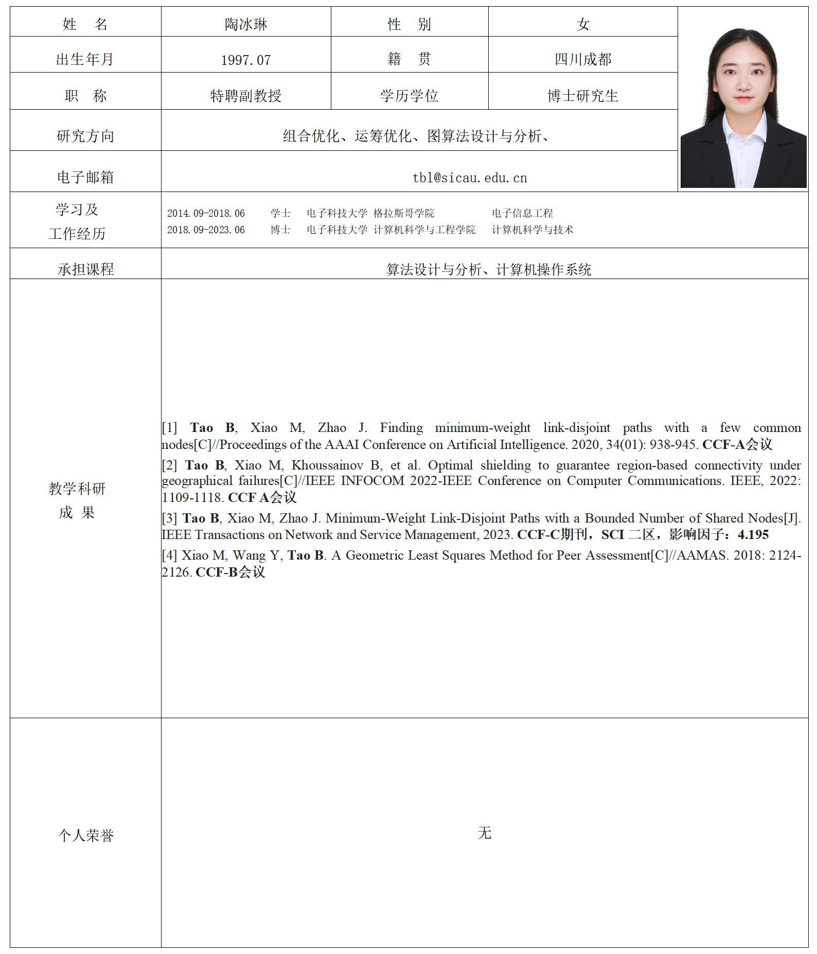 陶冰琳老师简介