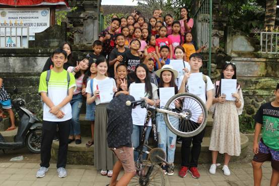 巴厘岛的乌布虽是艺术的殿堂,却也无法让当地的小学摆脱“贫困”二字的修饰。而贫困所导致的直接结果,便是教学资源的匮乏。为四至六年级的学生带去知识的力量,便也就是此行的目的了。纯真与友善是这个年龄的孩子独有的美好,对于知识的渴求,使得他们对于这些来自他国的哥哥姐姐们犹为热情。紧张与不安在活跃的课堂氛围中渐渐消失。寓教于乐的教学方式,加之图像的使用与日常口语的练习,让课程更添轻松与愉快。美好的时光总是分外短暂,离别总在不经意间便悄然而至。“每一天我们都会带领他们唱一首好听的英文歌。犹记得,最后一天在那个教室里,我们唱了雪绒花。看着孩子们纯洁的目光,听着他们稚嫩的声音,不由得眼眶泛红。因为我们在这一周里每天都会笑着说你好,分别时,每一个小朋友都会以额手礼告别。”于李姝仪而言,此行最大的收获便也在此。那份信念,那份纯真,那份感动,以及那份对于梦想的执着。此行足矣!